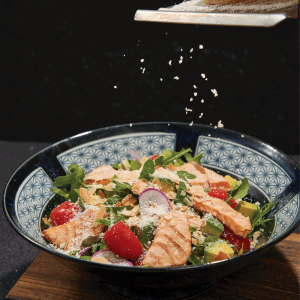 Đầu cá hồi nướng muối hoặc trứng cá tuyết